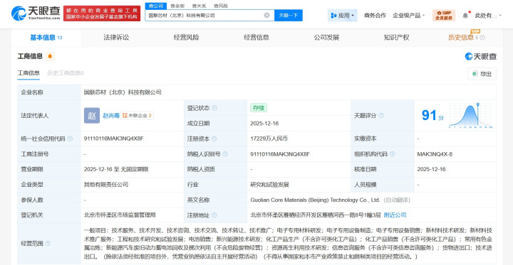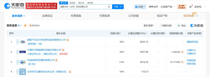 每经AI快讯,天眼查工商信息显示蚂蚁配资,近日,国联芯材(北京)科技有限公司成立,法定代表人为赵尚骞,注册资本约1.7亿元人民币,经营范围含电子专用材料研发、电子专用设备制造、电子专用设备销售、新材料技术研发、新材料技术推广服务、工程和技术研究和试验发展、电池销售、新兴能源技术研发、信息咨询服务等。股东信息显示,该公司由国联汽车动力电池研究院有限责任公司、宁德时代(300750)、中国有研科技集团有限公司、北京材芯合赢科技合伙企业(有限合伙)共同持股。